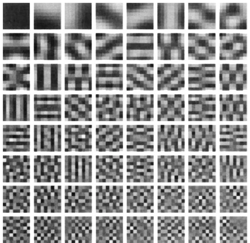 FIG. 1 Principal components calculated on 8 x 8 image patches extracted