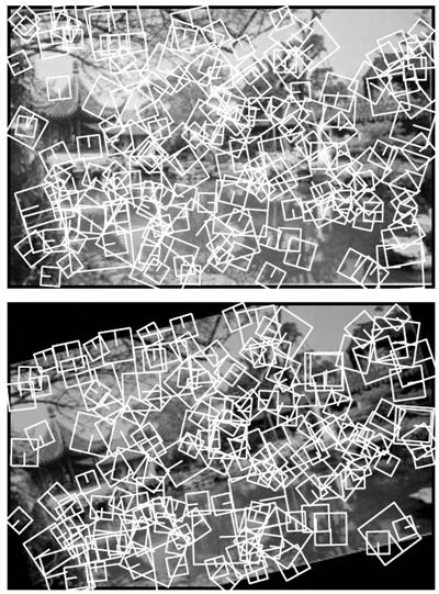 しかし、結果はほぼ同じです。つまり、画像は、それぞれが潜在的な物体のごく一部に一致する、大規模な局所特徴セットに変換されますが、一般的な視覚変換に対してはほぼ不変です。