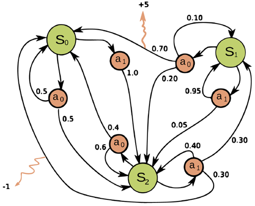 To simplify things, we often assume that the environment is also a Markovian process, which has internal world state \(w_t\), from which the observations \(o_t\) are derived. (This is called a POMDP — see Section 1.2.1 ). We often simplify things even more by assuming that the observation \(o_t\) reveals the hidden environment state; in this case, we denote the internal agent state and external environment state by the same letter, namely \(s_t = o_t = w_t = z_t\). (This is called an MDP — see Section 1.2.2). We discuss these assumptions in more detail in Section 1.1.3.