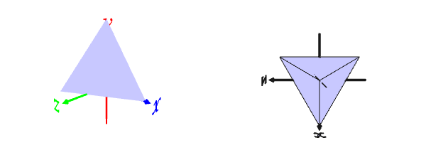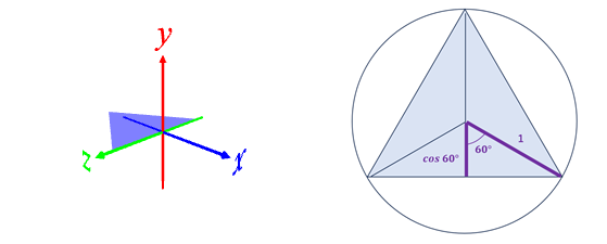 [4] y 軸周りに回転した時に底面に正三角形ができるように原点から離れる。
