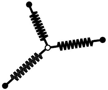 図6.13に示す物理的なアナロジーは、この議論をより明確にするかもしれない。平面上の点群の重心を求めたいと想像してもらいたい。同じバネ定数を持つバネを、固定点と自由に移動できる小さな物体に取り付ける。物体は、点の位置の平均に引っ張られる。バネは、位置エネルギーのバネ方程式を通じて、最小二乗ノルムを実現する。この物理的なアナロジーは、各点と平均の差である残差の二乗和を最小化するという基準から平均の計算を導くことに対応している。ここで、点の1つが移動可能だと仮定する。この点をてこ点と呼ぶ。てこ点を十分に遠くに引っ張ることで、平均の位置を任意の点に移動させることができる。これは、最小二乗基準に基づく推定値が外れ値に対して極めて敏感であることを示している。たった1つの外れ値でも、推定値が台無しになる可能性がある。理想的には、外れ値に接続されたバネを壊して推定値に影響を与えないようにしたい。バネ定数を変更して遠く離れた点が推定値にほとんど影響を与えないようにすることは、影響関数に基づくロバスト推定量の実装に相当する。外れ値に接続されたバネを壊すことは、サンプルの一貫性のあるサブセットを決定するリサンプリング方式に相当する。リサンプリング方式では、ランダムなサブセットを繰り返し抽出し、最良の推定値をもたらすサブセットを選択する。リサンプリングアルゴリズムの例としては、ランダムサンプルコンセンサス法、最小中央値二乗回帰法、その他の回帰におけるコンピュータ集約型手法などがある。
