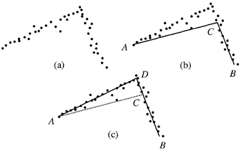 折れ線をフィッティングする方法には、トップダウン分割とボトムアップ結合の2つがある。